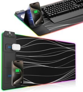 Transform your gaming or work experience with this spacious, high-quality gaming mouse pad! Crafted from soft, absorbent, and waterproof material, it delivers outstanding comfort. Whether you’re at a desk job, kids playing, or diving into intense PC gaming sessions, this mouse pad is the perfect gift for anyone! Plus, it adds a splash of creativity to your workspace. With eleven vibrant colors to choose from, it features a non-slip base that keeps your PC accessories and more securely in place. Best of all, it conveniently charges your everyday devices like smartphones or AirPods, making it an essential addition!