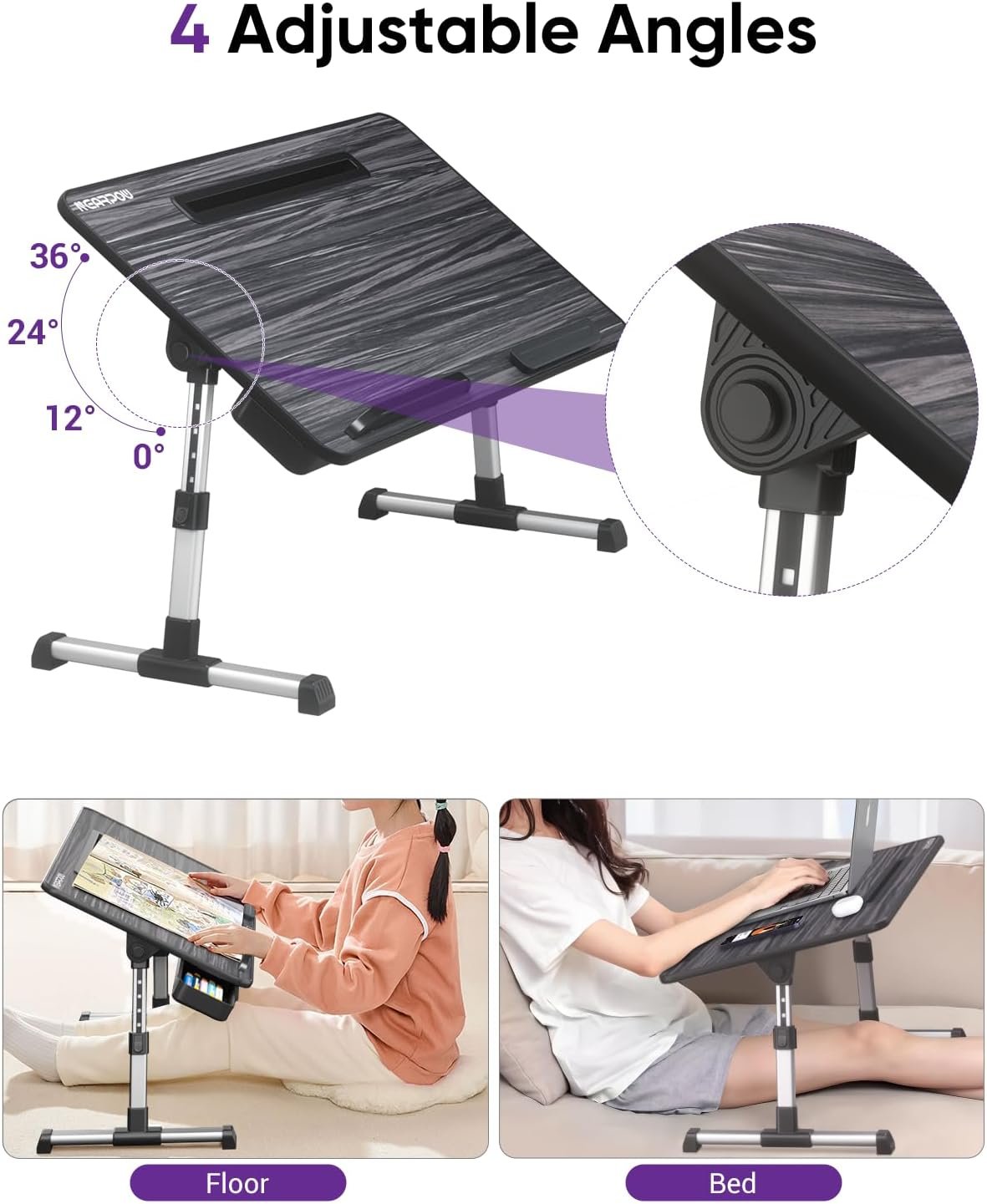 This wooden lap desk stands out as an premium choice available online. Crafted for durability, stability, and versatility, this again wood lap desk offers an ideal solution for anyone seeking comfort while using their laptop. You can easily adjust the height to suit your preferred seating or standing position, ensuring an ergonomic experience. Plus, with its blended drawer and additional storage slots, you’ll have the perfect space to keep your essentials, like your phone, right at your fingertips.